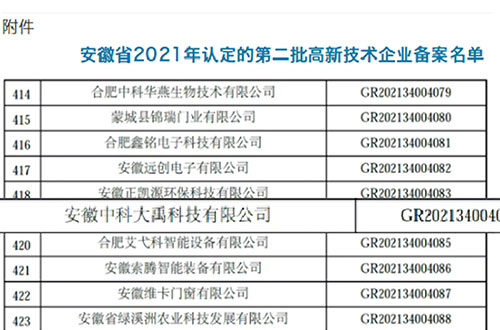 入選安徽省2021年第一批入庫科技型中小企業(yè)